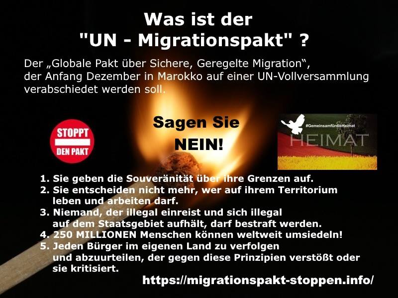Am 10. Dezember 2018 will die Bundesregierung den internationalen Pakt der Vereinten Nationen annehmen Global Compact for Migration (GCM), der Migranten aus aller Welt weitgehende Rechte zur Migration nach Deutschland zusichert unterschrieben..